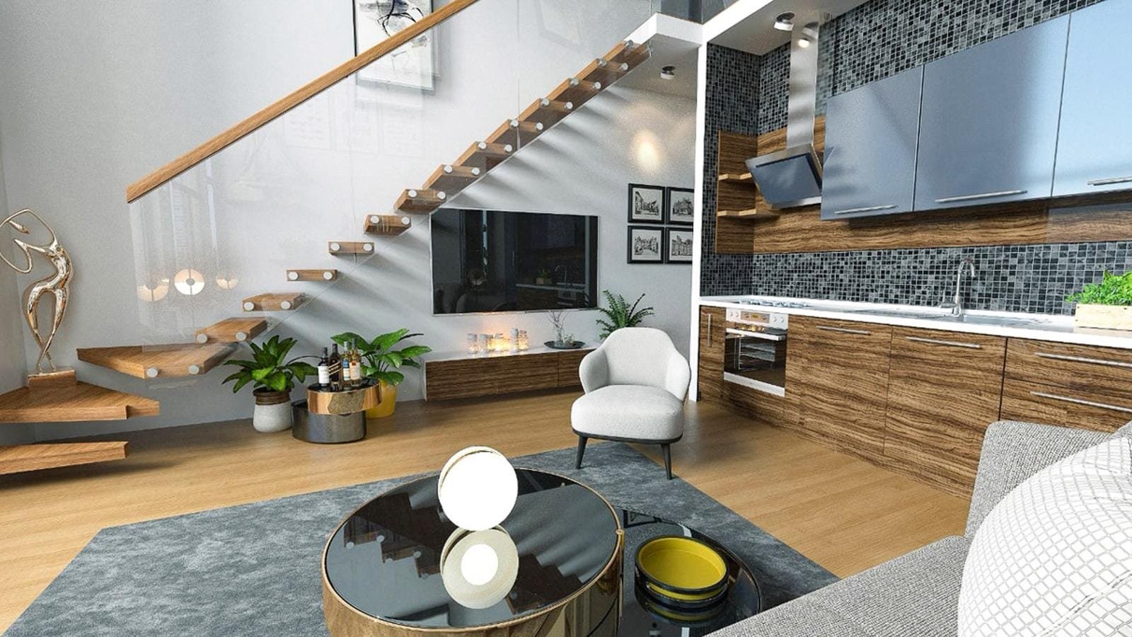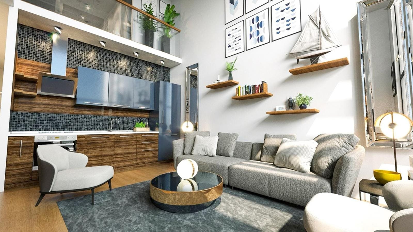 * Просторная кухня-гостиная открытого типа
